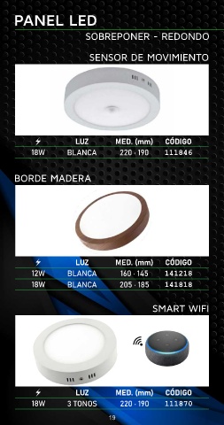 PANEL LED SOBREPONER - REDONDO SENSOR DE MOVIMIENTO 111846 BORDE MADERA 141218 141818 SMART WIFI 111870 19