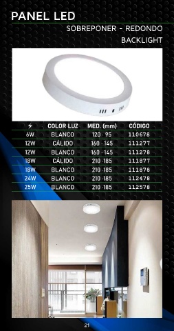 PANEL LED SOBREPONER - REDONDO BACKLIGHT 110678 111277 111278 111877 111878 112478 112578 21