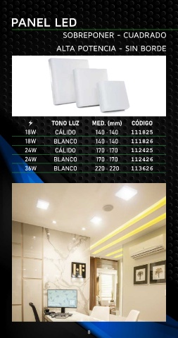 PANEL LED SOBREPONER - CUADRADO ALTA POTENCIA - SIN BORDE 111825 111826 112425 112426 113626 8