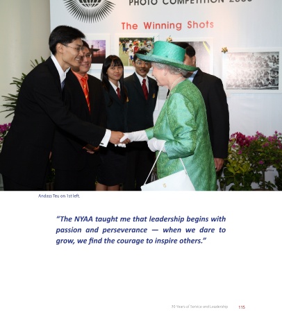 Andass Teu on 1st left. “The NYAA taught me that leadership begins with passion and perseverance — when we dare to grow, we find the courage to inspire others.” 30 Years of Service and Leadership 115