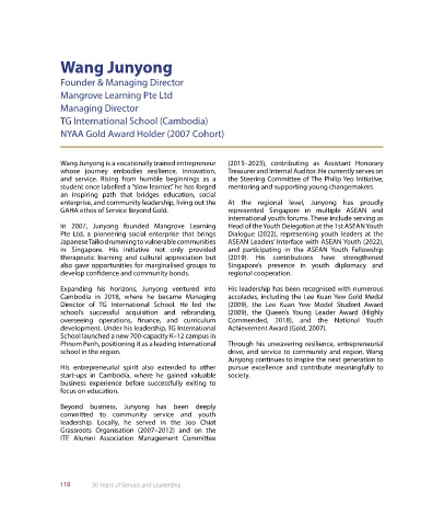 enterprise, and community leadership, living out the At the regional level, Junyong has proudly