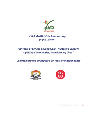 NYAA GAHA 30th Anniversary (1995 - 2025) “30 Years of Service Beyond Gold - Nurturing Leaders, Uplifting Communities, Transforming Lives” Commemorating Singapore’s 60 Years of Independence 30 Years of Service and Leadership 131