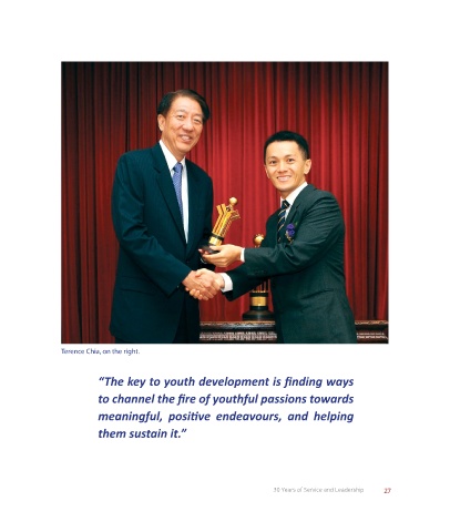 Terence Chia, on the right. “The key to youth development is finding ways to channel the fire of youthful passions towards meaningful, positive endeavours, and helping them sustain it.” 30 Years of Service and Leadership 27