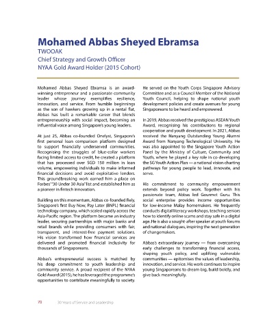 Mohamed Abbas Sheyed Ebramsa is an award- He served on the Youth Corps Singapore Advisory