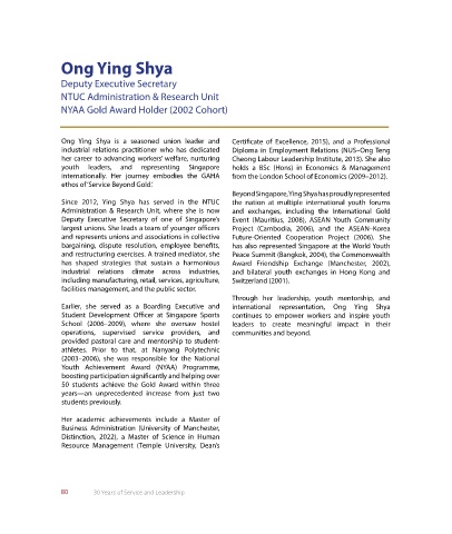 Ong Ying Shya is a seasoned union leader and Certificate of Excellence, 2015), and a Professional