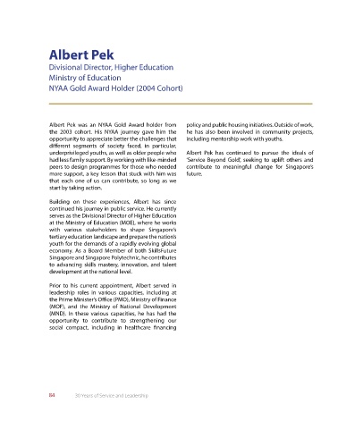 Albert Pek was an NYAA Gold Award holder from policy and public housing initiatives. Outside of work,