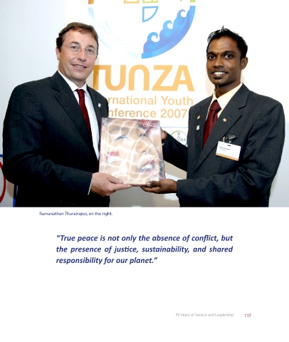 Ramanathan Thurairajoo, on the right. “True peace is not only the absence of conflict, but the presence of justice, sustainability, and shared responsibility for our planet.” 30 Years of Service and Leadership 117