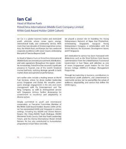 Fuel Services, where he drove market leadership community service, Ian Cai exemplifies the values of