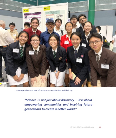 Dr Wenqian Chen, 2nd from left, 2nd row, in navy blue shirt and black cap. “Science is not just about discovery — it is about empowering communities and inspiring future generations to create a better world.” 30 Years of Service and Leadership 19