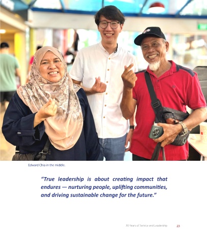 Edward Chia in the middle. “True leadership is about creating impact that endures — nurturing people, uplifting communities, and driving sustainable change for the future.” 30 Years of Service and Leadership 23