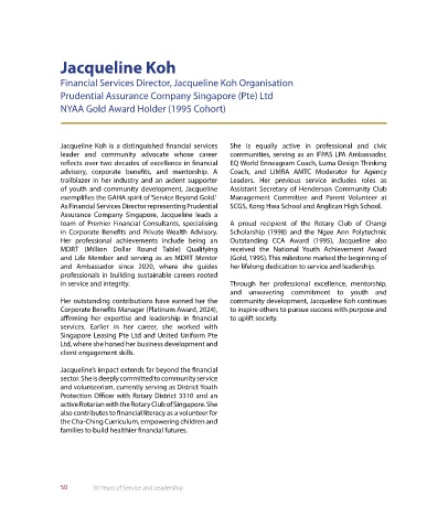 Jacqueline Koh is a distinguished financial services She is equally active in professional and civic