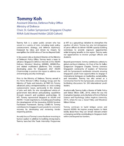 advance Singapore’s defence interests at the ASEAN Beyond government, Tommy contributes actively to