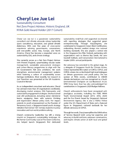 sustainability engagement strategies. She has trained prestigious accolades, including the HSBC NYAA