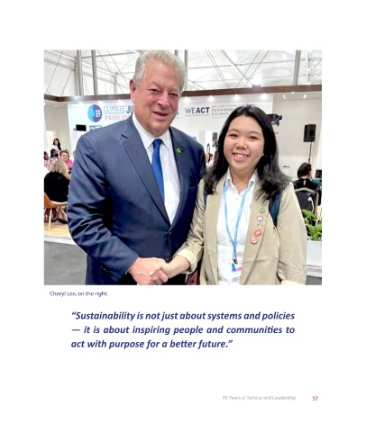 Cheryl Lee, on the right. “Sustainability is not just about systems and policies — it is about inspiring people and communities to act with purpose for a better future.” 30 Years of Service and Leadership 57