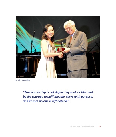 Lim En, on the left. “True leadership is not defined by rank or title, but by the courage to uplift people, serve with purpose, and ensure no one is left behind.” 30 Years of Service and Leadership 61