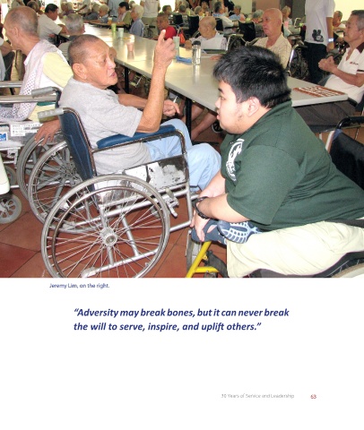 Jeremy Lim, on the right. “Adversity may break bones, but it can never break the will to serve, inspire, and uplift others.” 30 Years of Service and Leadership 63