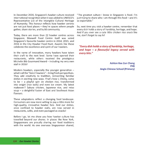 celebrate the excellence and spirit of our hawkers. “Every dish holds a story of hardship, heritage,