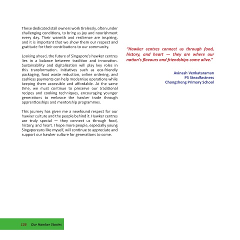gratitude for their contributions to our community. “Hawker centres connect us through food,