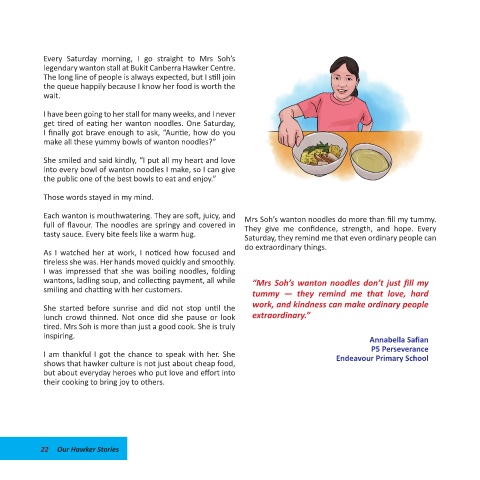 wantons, ladling soup, and collecting payment, all while “Mrs Soh’s wanton noodles don’t just fill my