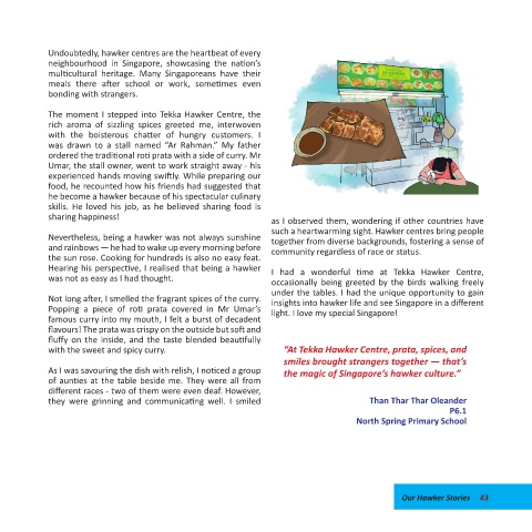 with the sweet and spicy curry.                         “At Tekka Hawker Centre, prata, spices, and