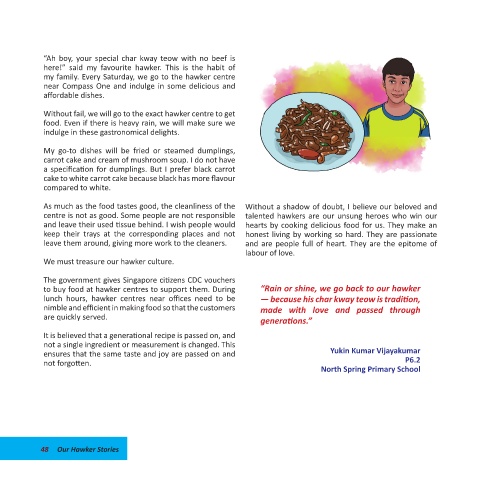 to buy food at hawker centres to support them. During    “Rain or shine, we go back to our hawker