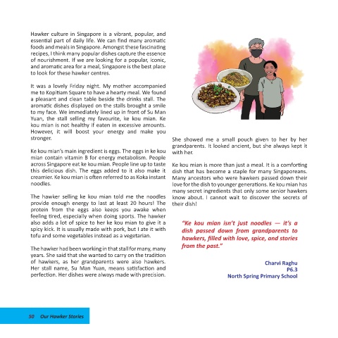 tofu and some vegetables instead as a vegetarian.       hawkers, filled with love, spice, and stories
