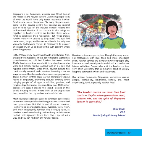 Today, hawker centres serve as the community dining Our unique homeland, Singapore, comprises unique