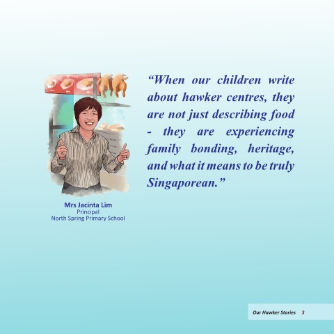 “When our children write about hawker centres, they are not just describing food - they are experiencing family bonding, heritage, and what it means to be truly Singaporean.” Mrs Jacinta Lim Principal North Spring Primary School Our Hawker Stories 3