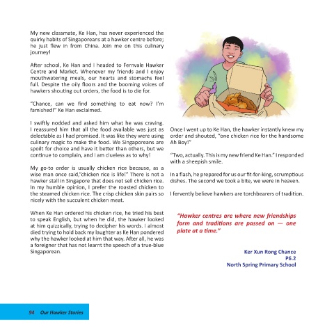 When Ke Han ordered his chicken rice, he tried his best “Hawker centres are where new friendships