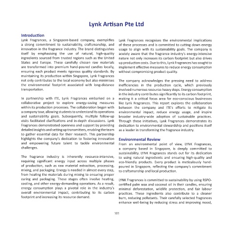 collaborative project to explore energy-saving measures like Lynk Fragrances. This report explores the collaboration