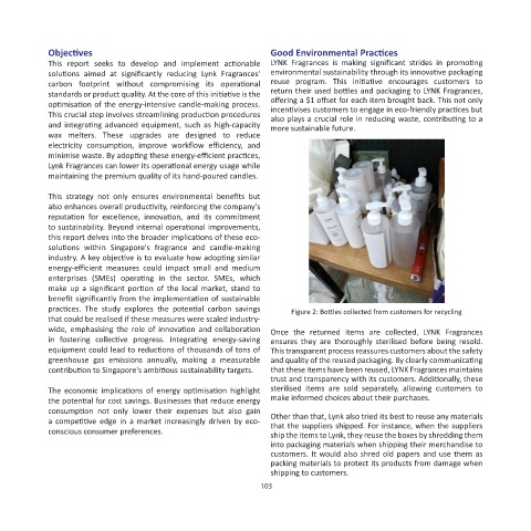 optimisation of the energy-intensive candle-making process. offering a $1 offset for each item brought back. This not only