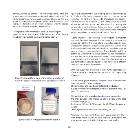 the abrasive detergent made using formulation 1 Future Outlook: The abrasive eco-detergent formulation