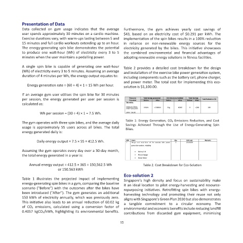 The gym operates with three spin bikes, and the average daily Table 1: Energy Generation, CO₂ Emissions Reduction, and Cost