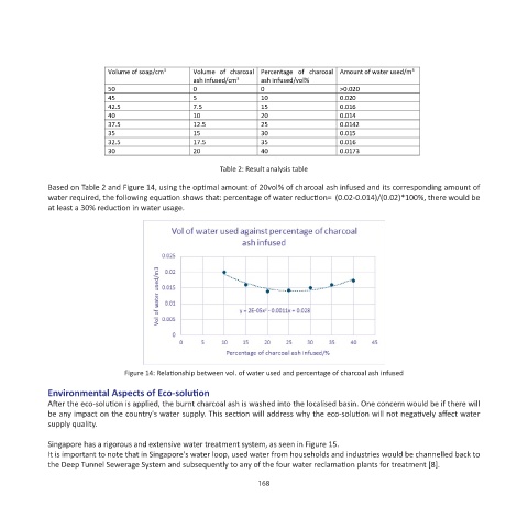 Based on Table 2 and Figure 14, using the optimal amount of 20vol% of charcoal ash infused and its corresponding amount of