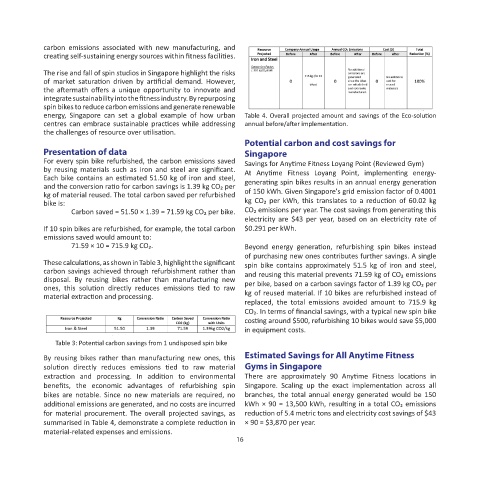 Table 3: Potential carbon savings from 1 undisposed spin bike
