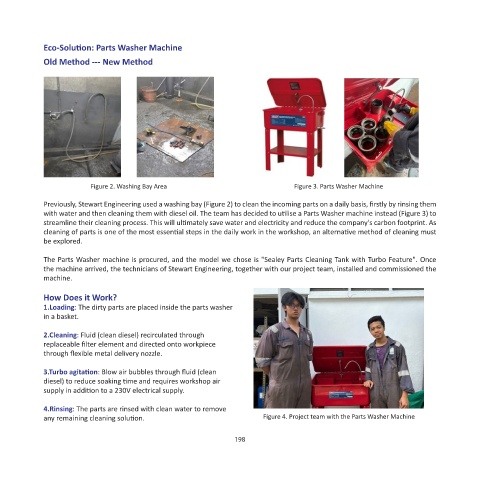 with water and then cleaning them with diesel oil. The team has decided to utilise a Parts Washer machine instead (Figure 3) to