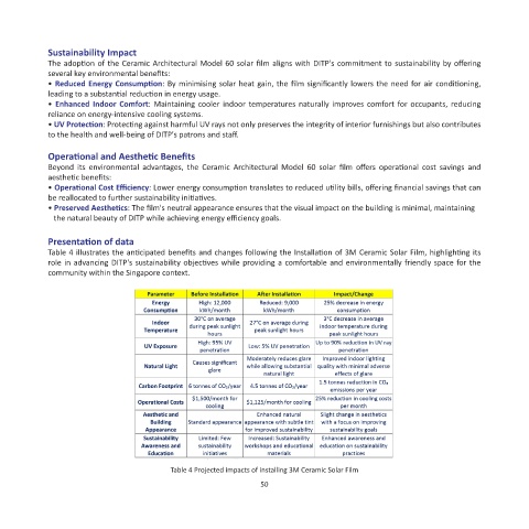 Table 4 illustrates the anticipated benefits and changes following the Installation of 3M Ceramic Solar Film, highlighting its
