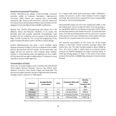 off-cuts derived from the HPL sheets. At the same time, the (20 x 10 x 113) in Table 2, which leads to an annual carbon