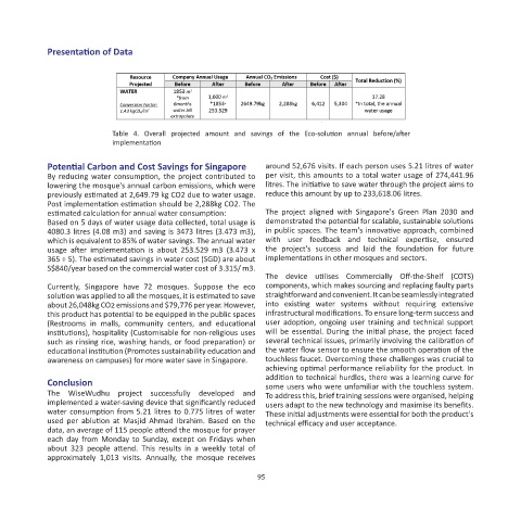 previously estimated at 2,649.79 kg CO2 due to water usage. reduce this amount by up to 233,618.06 litres.