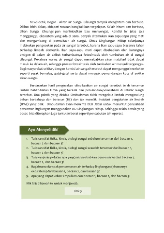 2. Tuliskan sifat fisika, kimia, biologi sungai sesudah tercemar dari bacaan 1,