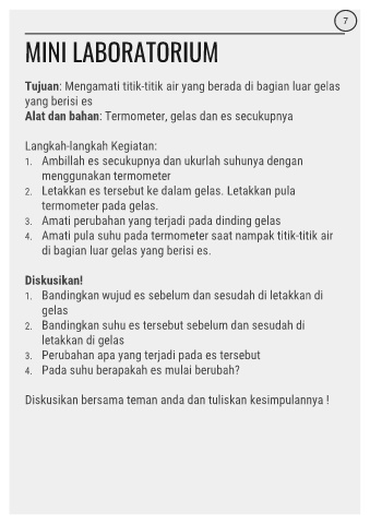 Alat dan bahan: Termometer, gelas dan es secukupnya
