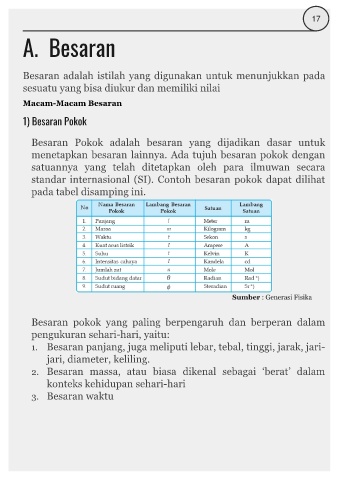 standar internasional (SI). Contoh besaran pokok dapat dilihat