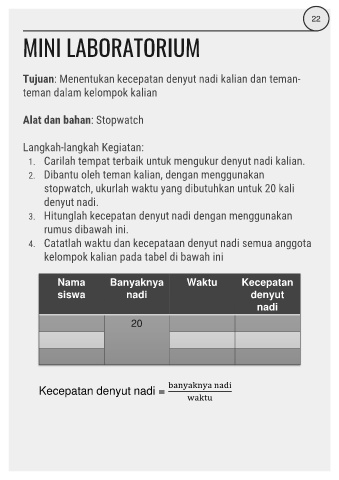 4. Catatlah waktu dan kecepataan denyut nadi semua anggota