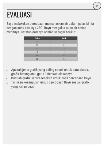 dengan suhu awalnya 28C. Bayu mengukur suhu air setiap