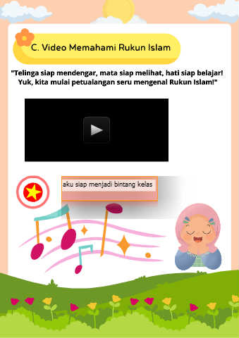 C. Video Memahami Rukun Islam "Telinga siap mendengar, mata siap melihat, hati siap belajar! Yuk, kita mulai petualangan seru mengenal Rukun Islam!"