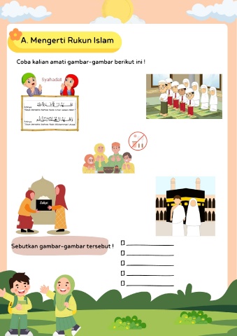 A. Mengerti Rukun Islam Coba kalian amati gambar-gambar berikut ini ! Sebutkan gambar-gambar tersebut !