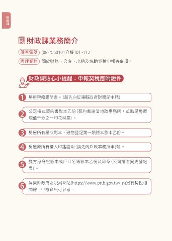 財政課貼心小提醒:申報契稅應附證件 俗宗教、公民教育、原住民生活改進、民防業務及掌管兵役編練、徵