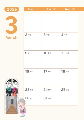 March 2 十四 3 十五 4 十六 5 驚蟄 6 十八 7 十九 8 婦女節