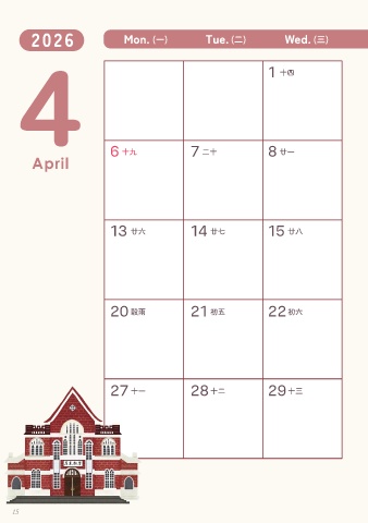 2026 Mon. (一) Tue. (二) Wed. (三) Thu. (四) Fri. (五) Sat. (六) Sun. (日)