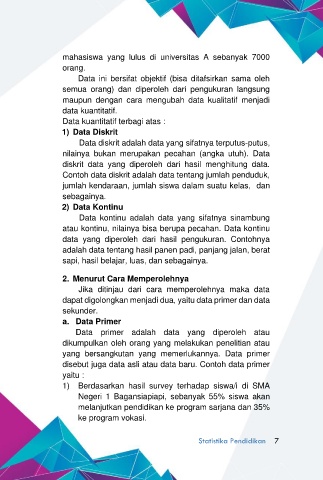 mahasiswa yang lulus di universitas A sebanyak 7000